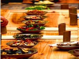 | 团队用餐: | 十人一桌,八菜一汤,人数不足十人时,在每人用餐标准不变的前提下调整餐食的分量。 |