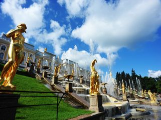 圣彼得堡 St Peterburg 抵达俄罗斯第二大城市-圣彼得堡,享用中式早餐后乘车前往游览夏宫花园*(游览时间约1小时) (夏宫周一关闭休息).夏宫分为上花园和下花园。 大宫殿前是被称作大瀑布的喷泉群。 这里有37座金色雕像,29座潜浮雕,150个小雕像,64个喷泉及2座梯形瀑布。 在喷泉群一个大半圆形水池的中央,耸立着大力士参孙和狮子搏斗的雕像,这就是著名的隆姆松喷泉。 塑像高3米,重5吨. 午餐,八菜一汤 之后参观圣彼得堡发源地—彼得大帝建的彼得保罗要塞,青铜骑士像、亚历山大纪念柱,圣伊撒基耶夫大教堂(外观),滴血大教堂、喀山大教堂;十二月党人广场、十月革命胜地—斯莫尔尼宫(外观),涅瓦大街 (游览时间约40分钟左右)。 晚餐,八菜一汤,晚餐后入住酒店休息 | ||