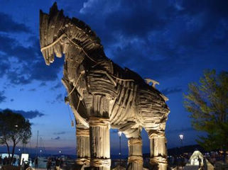 伊斯坦布尔ISTANBUL---恰那卡莱CANAKKALE 早餐之后,乘车前往恰那卡莱,中间旅游巴士直接上到轮渡到达达尼尔海峡的另一边。下午参观有4000多年历史特洛伊古城(大约1小时),观著名荷马史诗中的伟大著作之一《伊利亚特》中所述说的有关远古时期因希腊皇后海伦而引发的一场特洛伊古城的十年战争现场,还可以观赏到因“木马屠城记”而获胜的巨大木马(入内参观约30分钟)。古城曾以古代文明的中心闻名,美女海伦、特洛伊王子还在耳边细语当年特洛伊木马的传奇。晚餐后入住酒店休息。 注:伊斯坦布尔-恰纳卡莱车程约5小时 | ||
