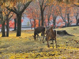 名古屋/奈良/大阪 早餐后前往有着“大和国”和“精神之乡”之称的日本古都之一的——奈良,现今的奈良市仍保持着日本古典风格,抵达后游览奈良【神鹿公园】,公园占地5.25平方公里,东西长约四公里,南北宽两公里,范围甚大,堪称是世界上数一数二的大公园,公园内有很多名胜古迹巨树丛立,还有历史悠久的古花草、山林及岩石等,这些都让到日本旅游的游客赞叹不已,另外,这里当然有神鹿啦!共有1,200多只,散布于山间、林下或寺庙的池畔,是奈良观光的象征。据说在古时代的时候,供奉在春日大社的武晃翁槌命,当年从陆国移驾到奈良就是骑在一只白鹿上,所以现在的日本人把奈良的驯鹿视为不可侵犯的神鹿,刻意加以保护,所以这个地方驯鹿越来越多,这些驯鹿对到访的游客都不会怯生,有时还会温驯的依偎在旅客的身边。然后前往【东大寺】:被列为世界文化遗产,建于公元728年,是全国68所国分寺的总寺院,因为建在首都平城京以东,所以被称作“东大寺”。寺内的大佛殿是世界最大的木造建筑,殿内高15米的大佛像——卢舍那佛,是世界最大的金铜佛像。中国唐代高僧鉴真和尚曾在这里设坛授戒。开车返回日本第二大城市大阪,参观【大阪城公园】(不登城), 公园内除了著名的大阪城天守阁外,还有大手门、千贯橹、火硝藏等13座被指定为重要文化财产的古建筑以及梅林和西丸庭园等。后前往最繁华的商业中心-【日本桥】和【心斋桥商业街】,是大阪最大的购物街区。 | ||