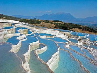 酒店早餐后,驱车前往帕姆卡莱(车程时间约4小时),抵达后参观著名的棉花堡 和希拉波利斯古城遗址(约2小时)。著名棉花堡所在地帕姆卡莱,此处的地下温泉水不断从地底涌出,含有丰富矿物质如石灰等,经过长年累月,石灰质聚结而形成棉花状之岩石,层层叠叠,构成自然壮观的岩石群和水池。您可在泉水内畅游或享受泉水涌出的天然水力按摩,据说有治疗高血压,风湿症和皮肤病的效用。晚餐后入住酒店休息。 | ||